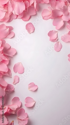 A white background with delicate pink petals and empty space, ideal for showcasing a Mother is Day product.