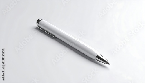 pen, ball pen, white, writing, stationery, office, minimalist, simple, modern, smooth, metal, cap, tip, plastic, sharp, elegant, design, object, tool, clean, bright, light, surface, flat, lying, horizontal, still life, product, studio, photograph, isolated, closeup, detail, chrome, detail, contemporary, commercial, glossy, equipment, supply, business, education, school, study