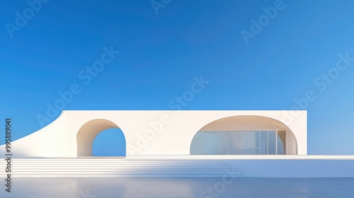 building, curved, archway, large, window, sidewalk, blue, calm, white, sky, serene, standing, architecture, modern, summer, travel, house, day, city, vacation, design, landscape, room, background, sunny, construction, outdoors, urban, tour tourism, holiday, concrete, wall, resort, abstract, style, interior, sea, nature, view, new, home, business, nobody, three-dimensional, beautiful, facades, exterior, sunlight, island