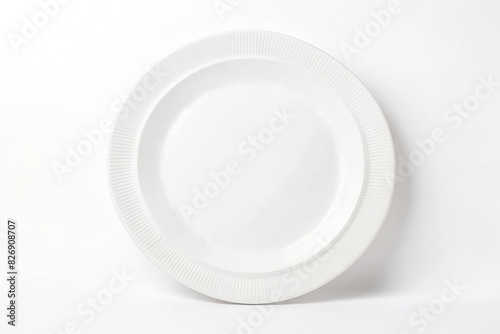 plate, white, ceramic, ribbed, edge, dish, tableware, dinnerware, kitchen utensile, isolated, background, clean, simple, elegant, minimalist, modern, dining, food, serve, eatery, home, decor, design, style, product, studio, blank, empty, copy, space, illustration