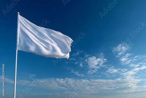 A white flag is flying in the sky on a clear day