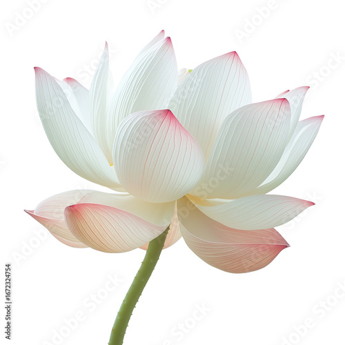 a white lotus flower with pink edges, against a pure white background.