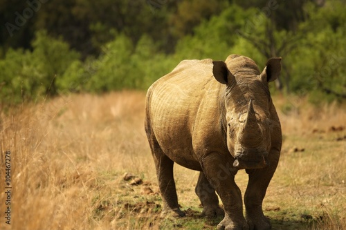 A white rhinoceros, rhino, (Ceratotherium simum) staying in grassland.