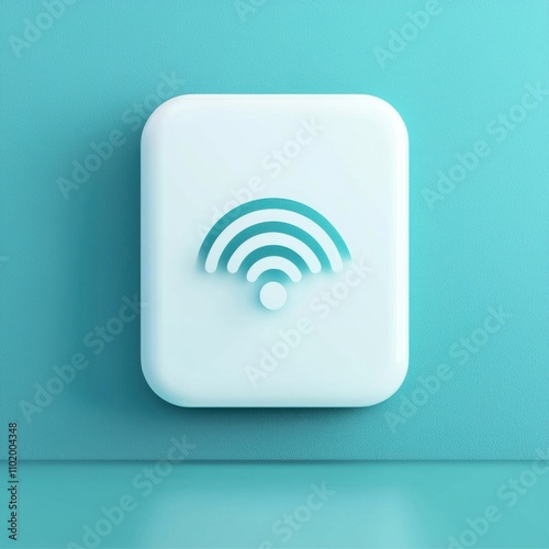 A white square with a blue background and a wifi symbol in the middle
