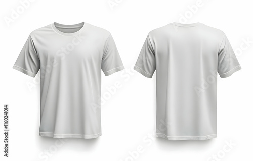 A white T-shirt mockup, showing front and back views isolated on a white background. Ideal for showcasing designs or prints in a minimalist style.