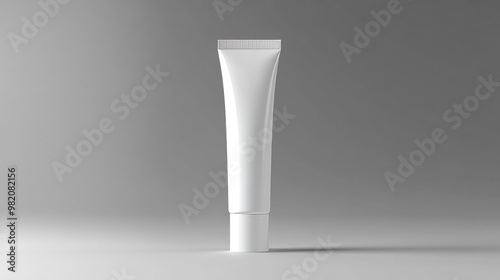 A white tube for cosmetics is shown against a gray background. This is a 3D design.
