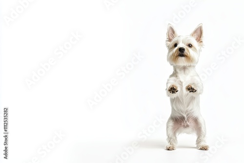 A White Westie Standing on Its Hind Legs in a Studio, dog, portrait
