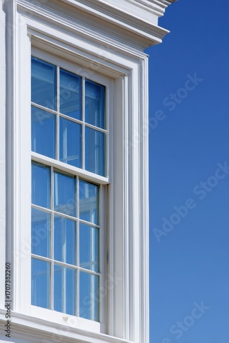 window, blue, sky, white, background, architecture, design, minimal, exterior, modern, urban, city landscape, scape, house, minimalistic, scenic, daylight, peaceful, calmness, contemporary, residential, sunlight, serene