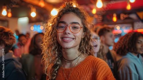 A wide-angle shot captures a Gen Z group of friends, filled with energy and joy, hanging out together