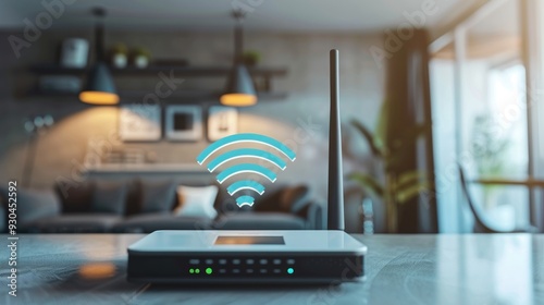 A WiFi router emitting signals against the backdrop of a room