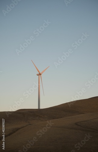 wind, hill, blue, sky, huge, energy, spinning, towering, horizon, airspace, grass, alpine, landscape, outdoors, windmill, countryside, village, vertical