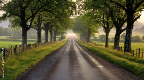 road, tree, country, winding, lane, path, green, nature, rural, landscape, field, grass, mist, fog, morning, sunlight, scenic, picturesque, beautiful, travel, journey, drive, peaceful, tranquil, serene, summer, spring, fresh, air, horizon, perspective, endless, open, light, hope, freedom, adventure, exploration, distant, far, away, long, narrow, quiet, calm, solitude, isolation