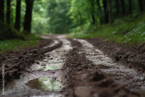 forest, path, trail, muddy, terrain, wilderness, hiking, offroad, dirt, road, rural, countryside, nature, outdoors, adventure, explore, discover, journey