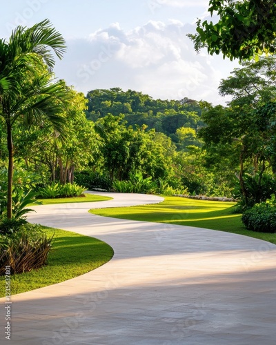 pathway, greenery, tree, landscape, nature, serene, calmness, escape, harmony, explore, wellness, peaceful, tranquil, walk, vibrant, resort, path, relaxation, bliss, inviting, sunlight, fauna, foliage, health, scenic, horticulture, winding, ground, lifestyle, leisure, design, aesthetic, vacation, beauty, flora, adventure, environment, travel, natural, summer, fresh, beautiful, garden