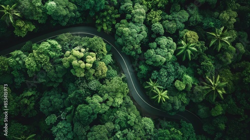 road, winding, rainforest, lush, green, aerial, view, jungle, tropical, forest, nature, tree, leaf, foliage, canopy, overgrown, path, driveway, asphalt, curve, pathway, landscape, photo, drone, overhead, perspective, top, down, viewpoint, dark, shadow, light, bright, contrast, natural, environment, ecology