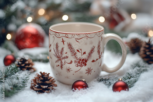 A winter mug with festive decor creates a warm atmosphere, ideal for winter evenings