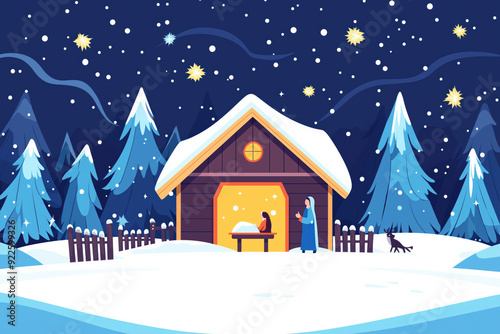 snow, winter, christmas, house, holiday, tree, illustration, home, vector, seasonal, background, design, happy, card, building, merry, night, landscape, celebrate, decoration, year, new, village, cartoon, greeting, town, flat, christmas, architecture, snowy, eve, street, snowfall, city, cold, december, light, scene, exterior, snowflake, sky, nature, art, banner, fir, blue, mountain, white