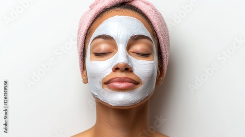 A woman enjoying a spa facial treatment, her face covered in a creamy mask.photorealistic portrait,