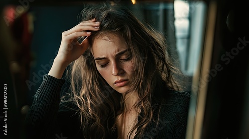 hair, female, woman, lifestyle, examining, frustration, loss, problem, damaged, person, care, adult, beauty, dry, hand, anxiety, horizontal, hygiene, disease, photo, skin, touching, young adult, color image, head, looking, skincare, bathroom, beauty treatment, bodycare, portrait, white, style, adults only, dandruff, scalp, advice, analysing, brush, complexion, concern, concerned, depression, discussion, doctor