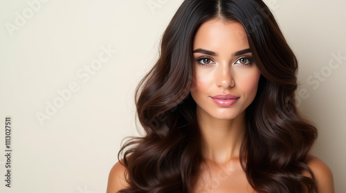 A woman flaunts her voluminous dark hair, embodying beauty and confidence for a premium hair dye brand