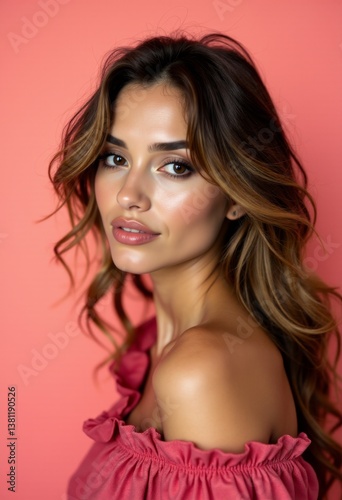 woman, beauty, hair, model, fashion, face, brunette, glamour, person, 1, long, make-up, lip, people, lady, dress, sensual, skin, studio, closeup, eye, coiffure, brown, sensuality, looking