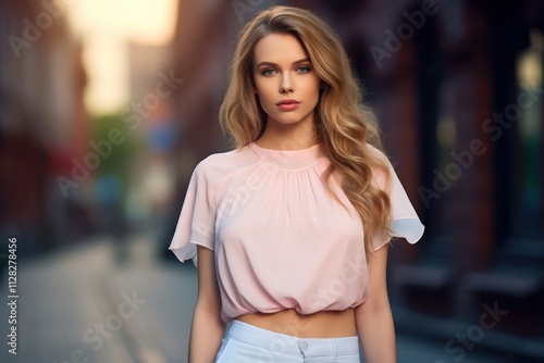 woman, pink, shirt, white, pant, standing, city, beauty, blond, street, long, lady, looking, straight, hair, female, young, bright, person, ahead, portrait, mood, pretty, model, fashion, attractive, lifestyle, caucasian, summer, style, urban, stylish, casual attire, 1, outside, dress, modern, cute, vogue, youth, face, sunny, background, adult, brunette, elegant, cheerful, trendy
