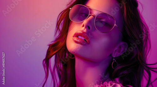 accessory, background, beautiful, cup, earring, eyewear, face, fashion, girl, goggles, goggles, hair, human, lip, lipstick, long, magenta, mouth, person, pink, purple, spectacle, sunglasses, violet, wear, wearing, woman