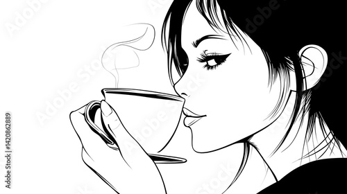 woman, holding, cup, hot drink, half, full, looking, beauty, female, young, camera, lady, drink, person, portrait, tea, face, hair, fashion, caucasian, white, pretty, hand, morning, beverage, lifestyle, illustration, attractive, background, model, style, hot, adult, art, design, vector, relaxation, 1, glamour, breakfast, vignetting, modern, drawing, cute, brunette, brown, mug, closeup, abstract