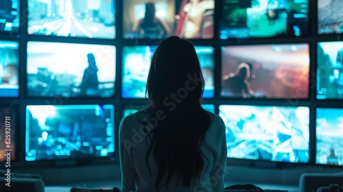 woman, female, person, portrait, young, lady, beauty, model, light, hair, background, fashion, black, adult, lifestyle, blue, caucasian, looking, window, style, innovation, attractive, futuristic, room, future, concept, face, pretty, technology, interactive, electronic, game, modern, dark, entertainment, 1, cute, cyber, summer, space, neon, nature, goggles, ai