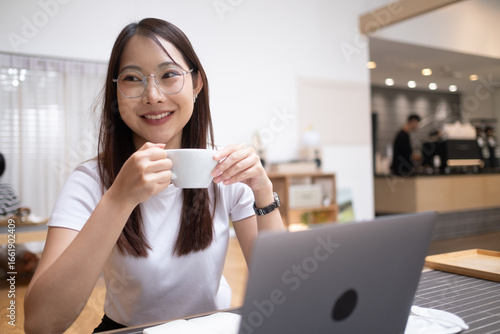woman, sitting, table, laptop, cup, hot drink, smiling, enjoying, female, computer, lifestyle, business, person, young, cyberspace, technology, beautiful, portrait, businesswoman, working, adult, modern, communication, attractive, cafes, looking, indoor, using, online, casual attire, office, holding, lady, professional, job, notebook, desk, drink, eatery, entrepreneur, 1, pretty, home, asian, freelancer, smartphone, wireless, shop, tea
