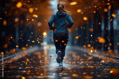 jog, runner, woman, leaf, fitness, rythm, vitality, calmness, determination, jogging, strength, peace, motivation, movement, exploration, wellness, rejuvenation, running, wet, splash, enjoyment, balance, rain, path, individuality, visual, unique, chic, athletic, exercise, scenery, sprint, endurance, motion, mindfulness, persistence, foliage, cardio, health, sport, energy, sunset, lifestyle, outdoors, activity, nature, adventure, environment, fresh