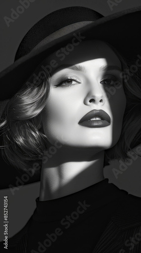 woman, black, hat, dramatic, lighting, photo, shoot, posing, model, beauty, fashion, style, portrait, glamour, studio, photo, face, eye, lip, hair, shadow, light, contrast, elegance, mysterious, allure, artistic, classic, sophisticated, timeless, mood, atmosphere, vintage, hollywood, film, black, retro, modern, contemporary, editorial