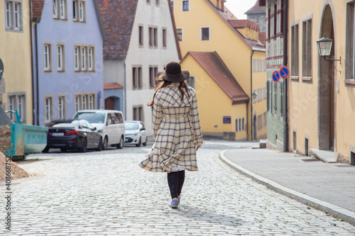 street, walking, walk, woman, coat, hat, wandering, wanderlust, one person, female, alone, house, city, town, european, europa, cobbled, road, sunny, daytime, colours, colourful, mediaeval, german, german, timber, old, village, pastel, isolated, mysterious, anonymous, plaid, pattern, stone, construction, roadwork, renovate, renovation, architecture, sunglasses, smile, girl, green, foulard, incognito, curve, sidewalk, by, 30s, white, clothing, fashion, snapshot, outerwear, businesswoman, urban, sunlight, sun, smiling, happy, happiness