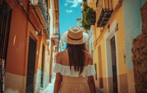 woman, wearing, straw, hat, narrow, street, brown, person, band, young, travel, vacation, female, summer, beauty, city, lifestyle, holiday maker, europa, tour tourism, backpack, town, urban, portrait, looking, walking, caucasian, italy, building, italian, adult, pretty, old, view, back, rest, warm, relax, casual attire, roma, vatican, architecture, holiday, white, dress, background, blond, fashion