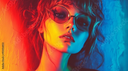 fashionable, beauty, model, woman, portrait, young, stylish, style, background, person, female, neon, light, hair, sunglasses, face, make-up, attractive, coiffure, art, trendy, caucasian, pink, bright, night, summer, studio, colourful, red, pose, creative, party, filter, glow, glamour, disco, make-up, music, club, 80s, lady, gorgeous, yellow, nightclub, 90s, hipster, 1, pretty, earphones