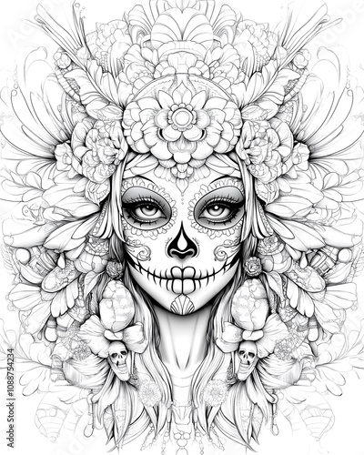 woman, flowery, headdress, skeleton, face, skull, halloween, look, determination, dead, carnival, day, mexican, sugar, holiday, female, hair, sorcerer, rose, make-up, portrait, fashion, beauty, drawing, line, youth, person, black, party, vampire, tattoo, illustration, decoration, celebration, coiffure, style, haircut, gothic, hair care, make-up, costume, poster, hand, doll, young, spider, model, horror