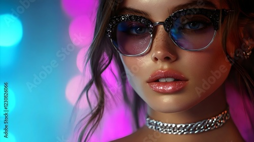 woman, blue, purple, hair, goggles, wearing, silver, beauty, bright, face, fashion, portrait, lady, model, chain, necklace, glamour, neon, pink, style, make-up, stylish, lifestyle, people, young, night, colours, elegant, background, light, vogue, lip, black, studio, violet, glow, high, disco, party, red, club, glistering, many-coloured, nigh, dark, filter, abstract, sexy, female
