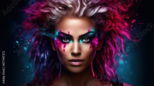 human face, clothing, lipstick, magenta, lip, eyeshadow, person, girl, woman, fashion, portrait, vibrant, coiffure, beauty, colourful, trendy, colourful