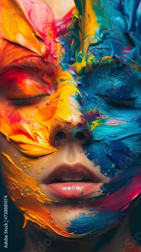 a woman with colorful paint on her face