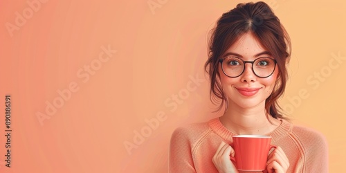 A woman with glasses holding a cup of coffee. Perfect for coffee shop promotions or lifestyle blogs, Generative AI