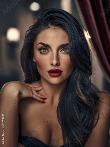 woman, long, dark, hair, black, bra, woman, beauty, adult, young, 1, person, caucasian, sensuality, portrait, fashion, model, brown, elegance, female, looking, closeup, glamour, human, face, coiffure, indoor, lifestyle, studio shot, beautiful, people, cute, view, adult, product, skin, lip, make-up, blond, curly, sex, symbol, luxury, desire, femininity, naked, lipstick