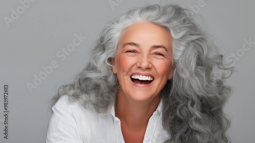 portrait, person, adult, smile, happiness, horizontal, lady, woman, happy, confidence, beauty, female, old, laughing, mature, senior, head shot, retired, face, looking, photo, lifestyle, fashionable, elderly, joy, cheerful, grandmother, curly hair, hair, background, attractive, vitality, 1, aged, modern, older, studio shot, white, caucasian, beautiful woman, one person, adults only, closeup, grey hair, expression, grey, color image