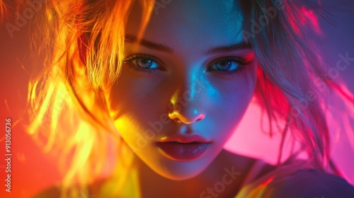 portrait, beauty, face, fashion, woman, blue, light, young, model, red, person, style, background, female, art, trendy, hair, bright, colourful, caucasian, posing, purple, neon, make-up, high-coloured, disco, shine, glamour, gorgeous, attractive, lip, closeup, skin, make-up, night, dark, sensuality, glowing, green, look, pretty, adult, vogue, abstract, lady, cosmetic, stylish, hand, party