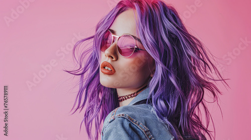 fashion, woman, female, model, young, beauty, person, hair, portrait, face, style, pretty, caucasian, make-up, pink, glamour, stylish, trendy, attractive, bright, coiffure, lady, colourful, lifestyle, elegant, purple, care, neon, white, vogue, sunglasses, background, posing, adult, concept, healthy, studio, dyed, hipster, haircut, summer, make-up, modern, cosmetic, art, party, violet, red, blue