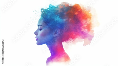 woman, watercolor, paint, colourful, art, portrait, female, face, profile, beauty, vibrant, colours, abstract, artistic, creative, imagination, fantasy, dreamy, serene, peaceful, calm, gentle, soft, delicate, stylish, elegant, graceful, modern, contemporary, design, illustration, graphic, texture, background, header, banner, artwork, image, visual, aesthetic, mood, feeling, emotion, spiritual, stress, anxiety, depression, mental health