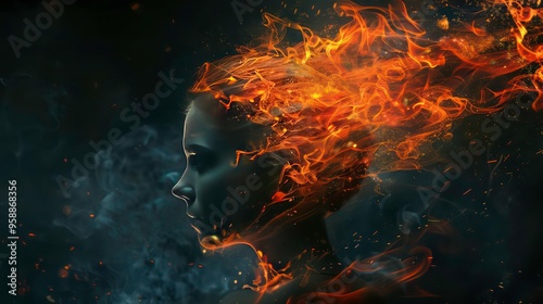 fire, flames, woman, face, head, neck, inferno, ember, spark, smoke, dark, background, silhouette, powerful, burning, hot, passion, energy, strength, abstract, art, digital, graphic, design, illustration, concept, dramatic, intense, bright, glow, light, heat, texture, photo, beauty, fantasy, spirit, soul, power, magic, mystic, divine, sacred, love, desire, fury, anger, destruction, transformation