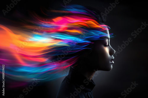 woman, face, portrait, beauty, hair, female, background, style, art, colourful, young, person, abstract, model, fashion, black, fantasy, blue, light, design, dark, glamour, head, body, illustration, adult, silhouette, caucasian, creative, lady, concept, human, artwork, night, 1, effect, energy, party, attractive, skin