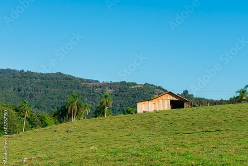 A wooden barn in the countryside of Tres Coroas - Rio Grande do Sul state, Brazil