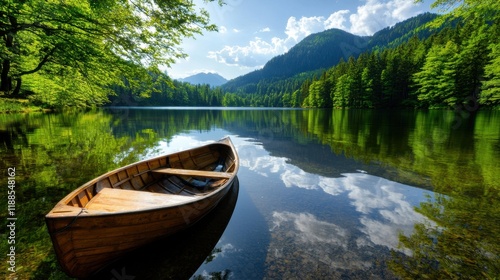 lake, boat, water, river, landscape, sky, nature, boat, travel, summer, mountain, canoe, forest, tranquil, green, fishing, sea, wood, cloud, cloud, sunset, calm, mountain, tree