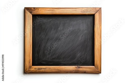 A wooden frame with a chalkboard surface inside, multifunctional design, isolated on white background